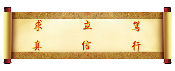 taptap点点体育校徽由盾牌与绶带的组合形成,在盾牌中心置入醒目的篆书体的“商”字,同时结合波浪纹与学校英文缩写“GCC”。绶带中则以书法字体呈现校训“求真、立信、笃行”。